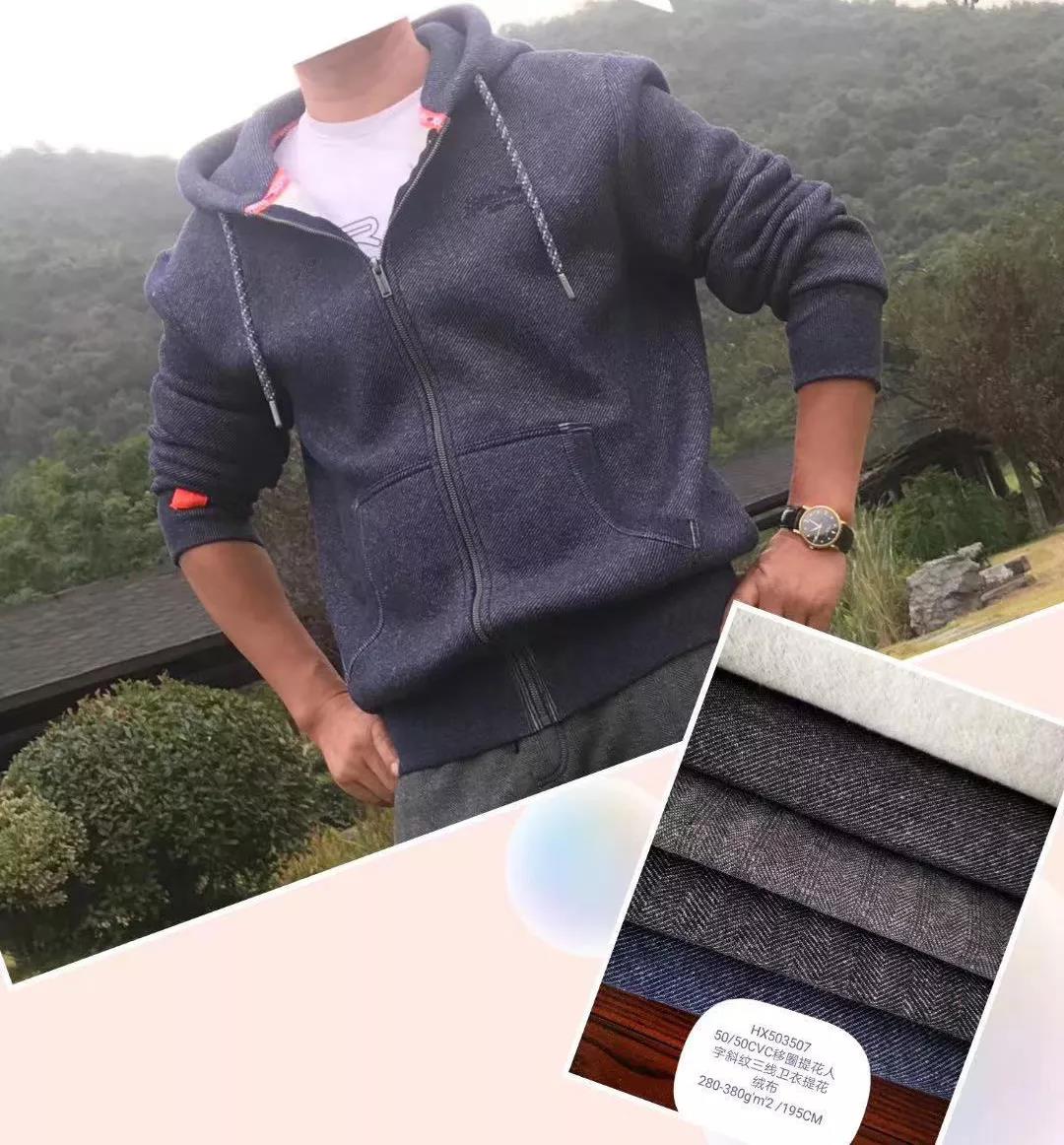 衛(wèi)衣布對于衛(wèi)衣整體質(zhì)量優(yōu)劣來講很重要,是挑選衛(wèi)衣時的一個重要參考標(biāo)準(zhǔn)。我們來看看佰源提花移圈衛(wèi)衣機織出的布樣及樣衣上身效果: